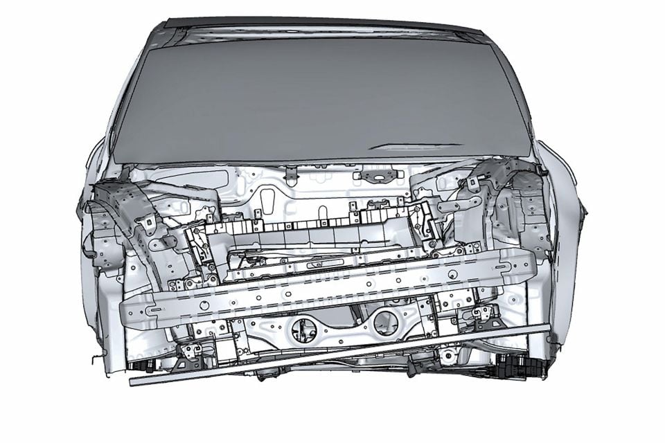 As with most modern vehicle platforms, this one supports cars of different sizes and aims to maximise parts commonality. Highly sharable components, such as the engine bay and rear underbody, are kept separate from customised sections, such as the rear cabin.